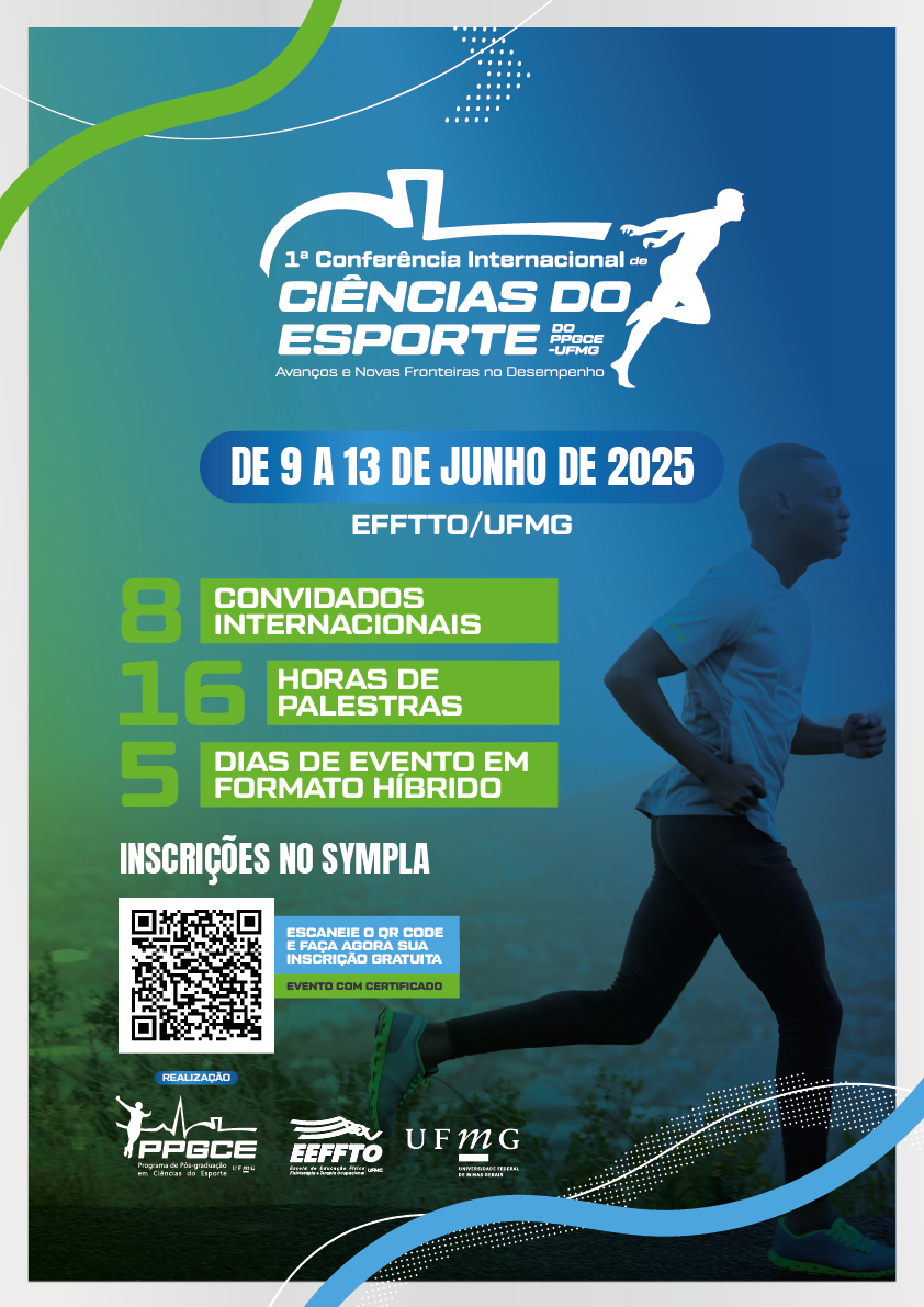 O Programa de Pós-graduação em Ciências do Esporte (PPGCE), da Escola de Educação Física, Fisioterapia e Terapia Ocupacional (EEFFTO) da UFMG, realiza a 1ª Conferência Internacional em Ciências do Esporte com a participação de especialistas do Brasil e do exterior e com temática Avanços e novas fronteiras no desempenho esportivo. O evento ocorrerá de 9 a 13 de junho, em formato híbrido, com tradução simultânea, e foco nas principais inovações do desempenho esportivo. As inscrições gratuitas para acompanhar o evento on-line podem ser feitas pelo Sympla (vagas para participar presencial estão esgotadas).