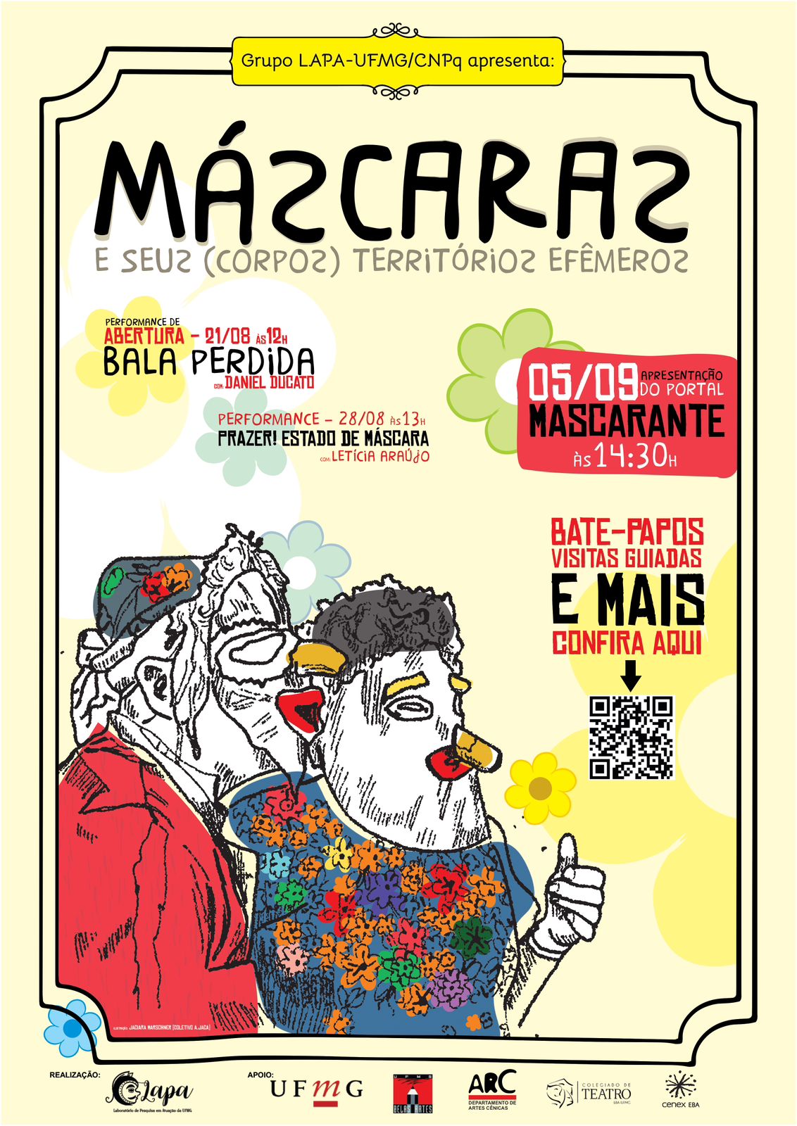 O Grupo Laboratório de Pesquisa em Atuação Cênica (Lapa), da Escola de Belas Artes (EBA) da UFMG, apresenta Máscaras e seus (corpos) territórios efêmeros. Com curadoria de Bya Braga e Daniel Ducato, a mostra reúne, até 11 de setembro, na Galeria da EBA, produções artísticas que tratam de (corpos) territórios efêmeros gerados pela criação de máscaras cênicas, em mascaramentos diversos e seus jogos lúdicos de atuação, vivências cênico-visuais e performances.