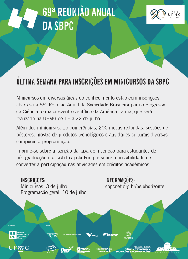 Mais informações estão disponíveis no site da 69ª Reunião Anual da SBPC.