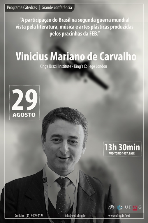 O professor Vinícius Mariano, convidado do Programa Cátedras no mês de agosto, expõe em palestra o resultado da sua pesquisa sobre a produção cultural dos músicos, escritores e artistas integrantes da Força Expedicionária Brasileira na Segunda Guerra Mundial.