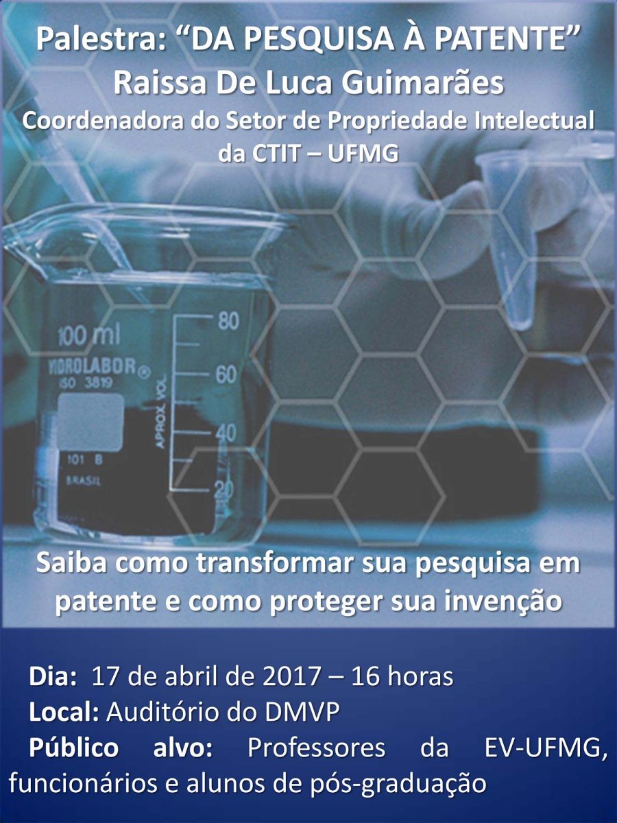 Escola de Veterinária promove a palestra 'Da pesquisa à patente'