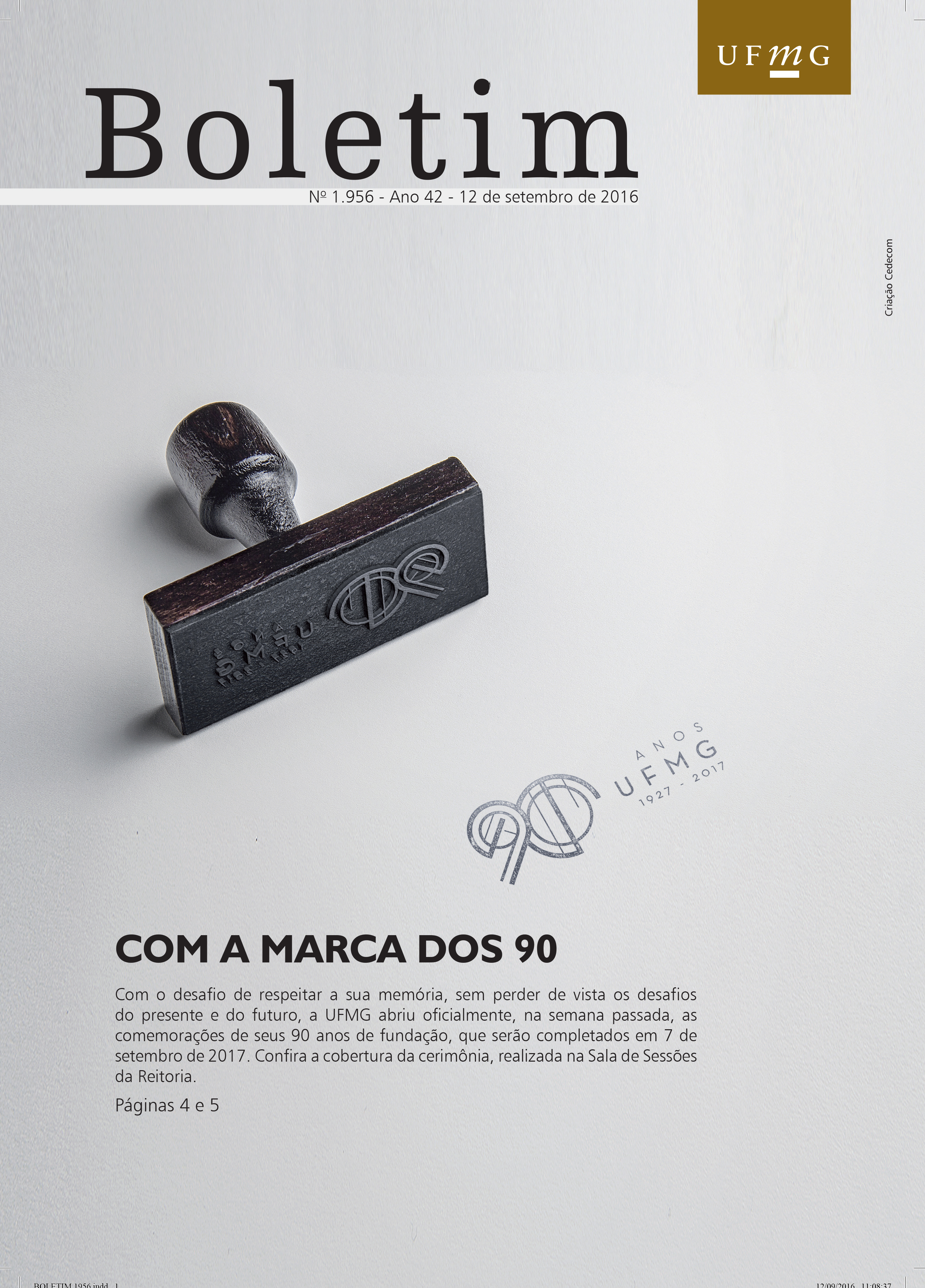Selo de comemoração 90 anos UFMG Cedecom UFMG