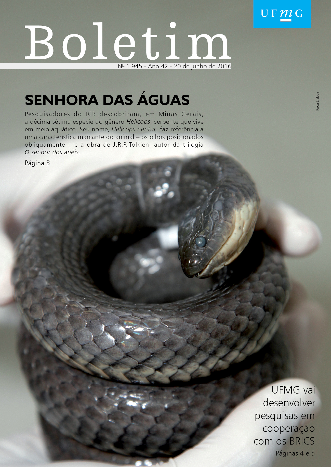 Equipe do ICB acaba de descrever uma nova espécie de serpente aquática, a Helicops nentur, que habita regiões de Minas Gerais. Relatada no artigo A new species of Helicops (Serpentes: Dipsadidae: Hydropsini) from southeastern Brazil, a nova espécie se diferencia de outras do gênero Helicops em vários aspectos morfológicos: possui 17 fileiras de escamas dorsais no meio do corpo, 111 a 117 escudos ventrais, 41 a 56 escudos subcaudais e alguns detalhes específicos na anatomia do hemipênis (o órgão copulatório do macho).